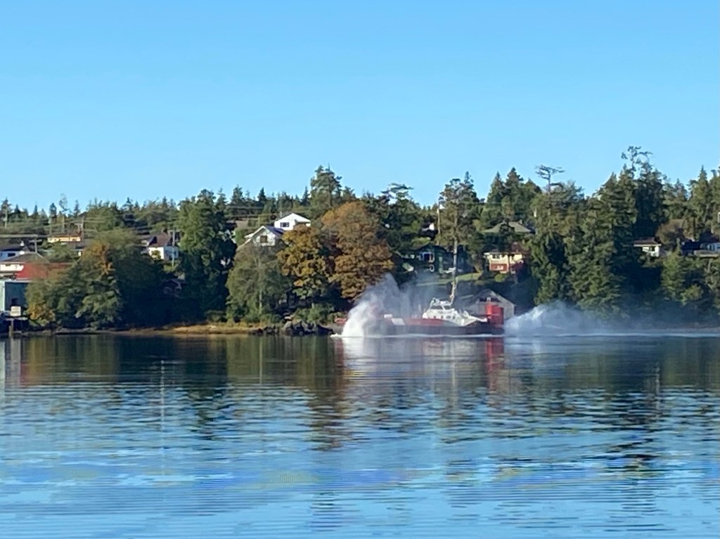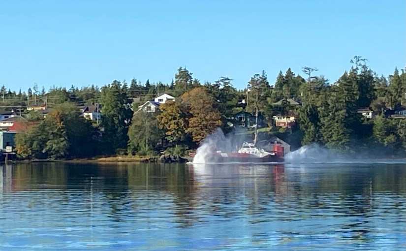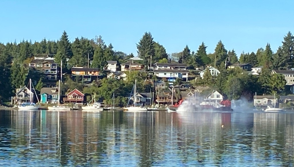 Buzzing? What was that sound up and down the bay the past few days? It was the coast guards in their retro-futurist hovercraft, doing some essential maintenance in and around the channel. Goodness, it was noisy when it was drifting past the office. I had to come outside, look for what I thought was a low flying helicopter, when it turned out to be a slow speeding hovercraft. Once it got past the restricted part of the channel, it revved up and took off at quite a pace. Fun toy. Oops, I mean fun essential work vessel.