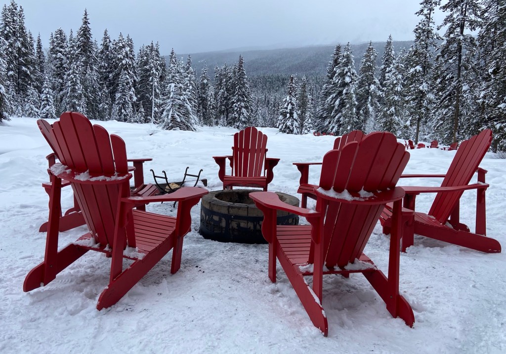 Eventually, slightly wet legged due to snowmelt on lower jeans, and ready to admit we should have put on snowshoes, we returned to our cabin to unpack, find dry pants, and get warmed up by the fire. Oh, and crack open a red ale we’d been saving as a fireside sipper. It was just the thing as we planned a proper snowshoe adventure for the following day!