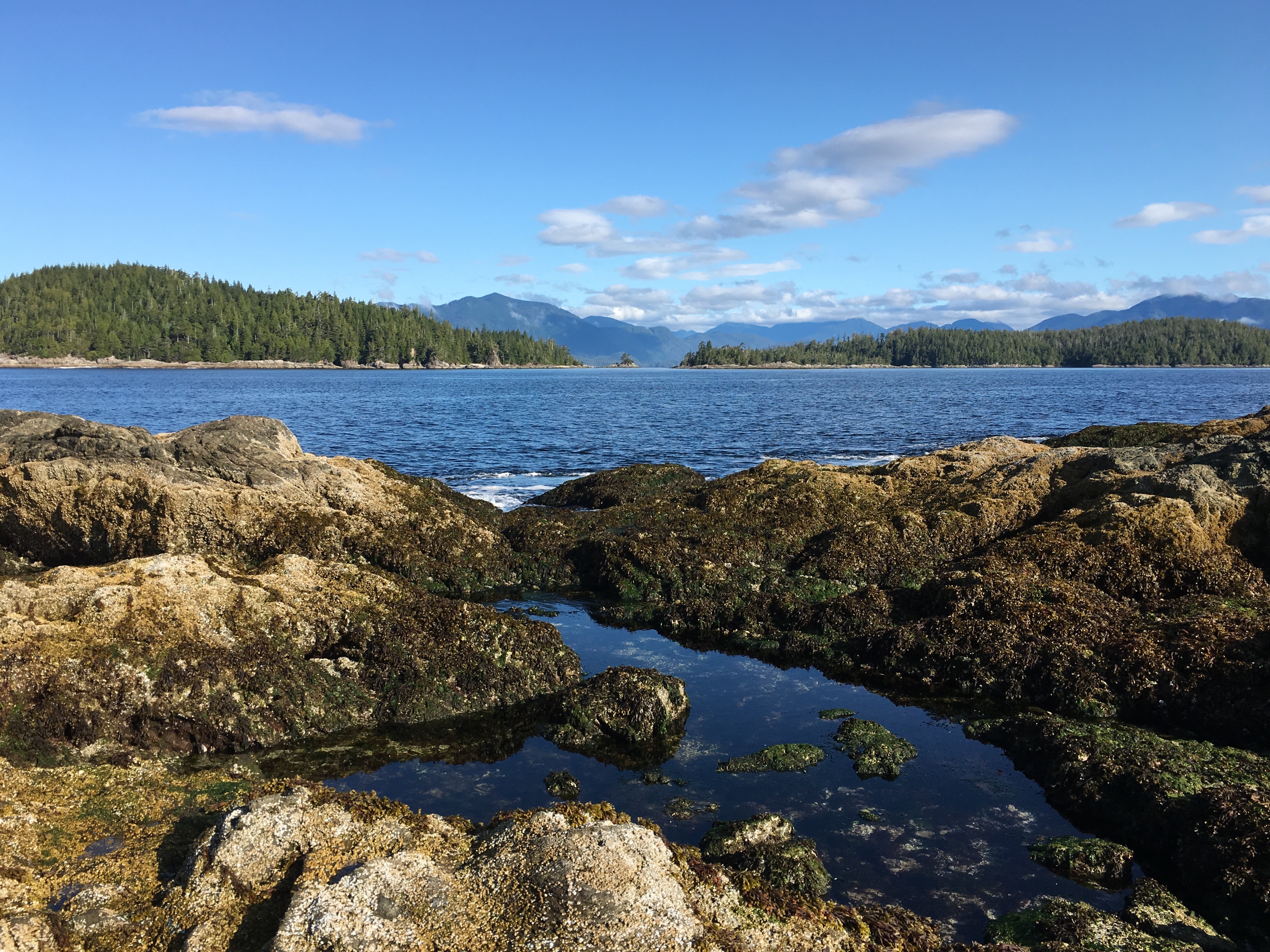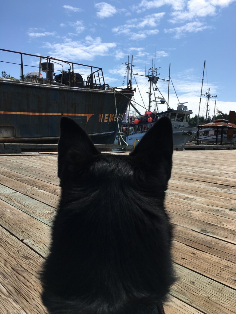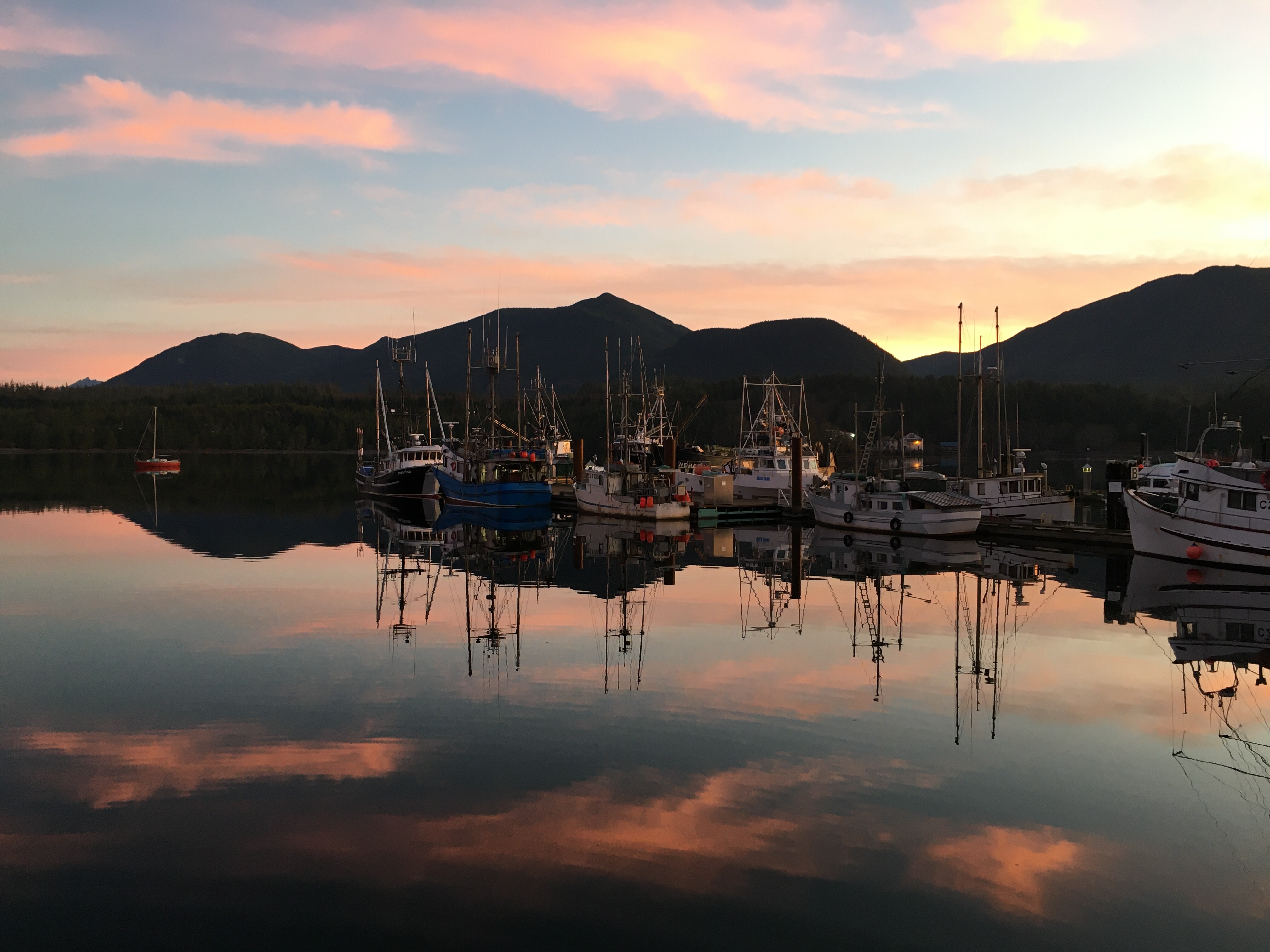 We paddled along the shore, admiring the big fishing vessels, waving at fishermen and pleasure boaters, and gradually improving our synchronized paddling. We crossed the inlet, circled Lyche Island, spotting sea stars, watching the bald eagles overhead, making our way to Port Albion, then Hitacu Dock, smiling at the wading blue herons and at another bald eagle standing in the mud flats.