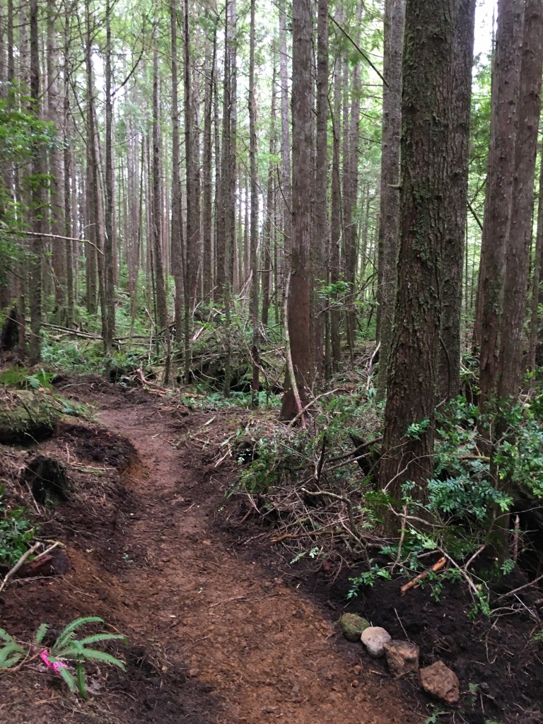 I can’t believe how quickly the summer is passing, and we’ve so much more to build! We had to down tools yesterday, and probably today, due to some very heavy rain and potentially strong wind gusts – the advice is forest-based work is high risk in these conditions. Still, when we head out there next week, we’ll be confident the raised sections are high and dry, in a good way, and we will see where drainage channels are needed.
