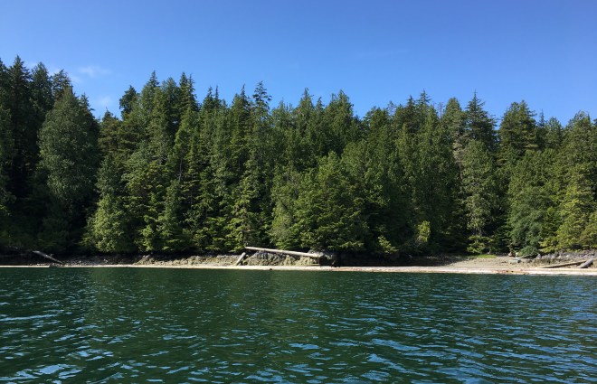 His closest bear encounter was from the safety of the Jeep last weekend, when we took a bumpy and juddering series of muddy forest roads to Mussel beach and Salmon beach. After seeing the bear strolling and browsing along the road, he was a little less insistent on needing to stop the car and pee behind a tree…