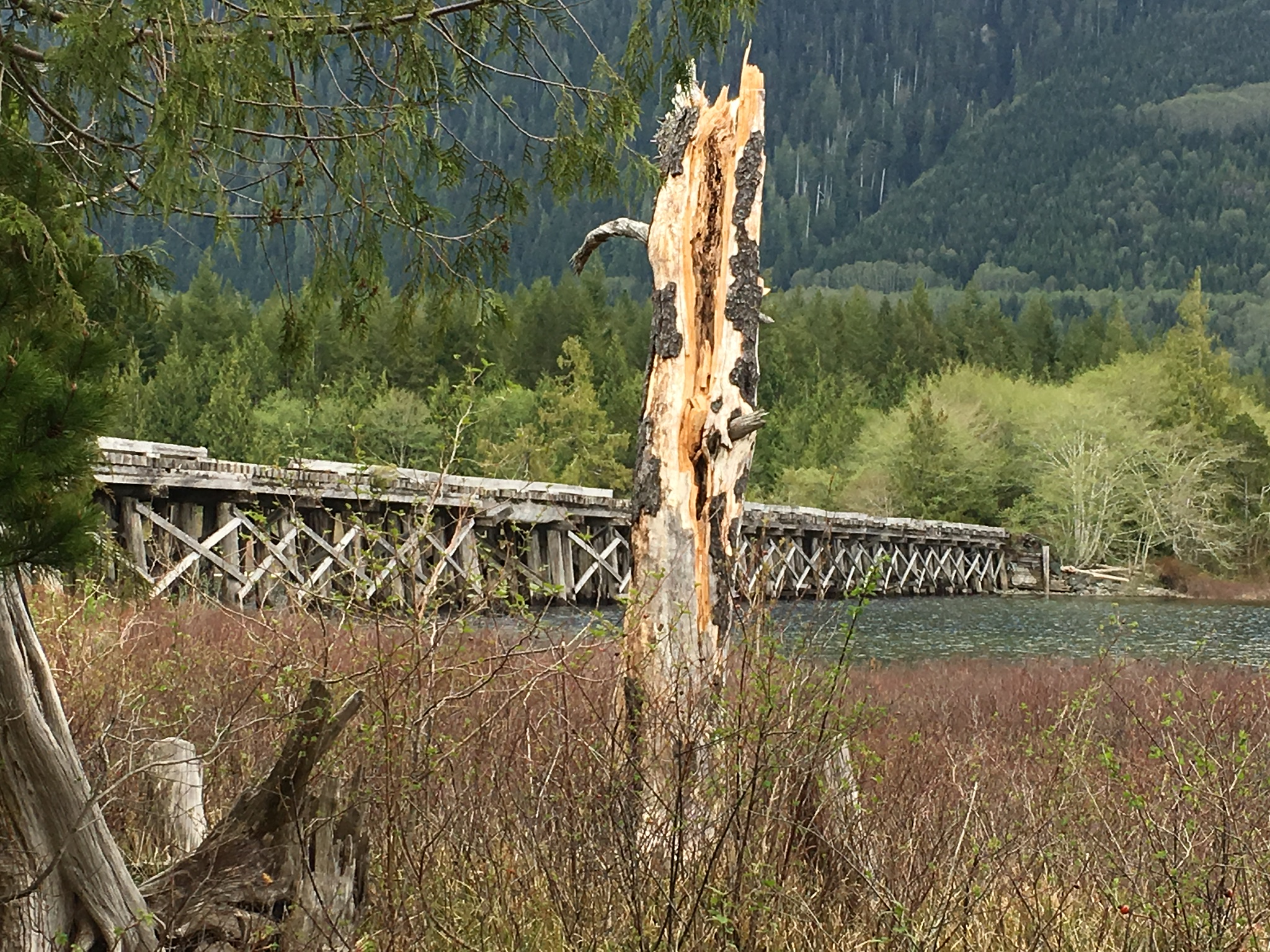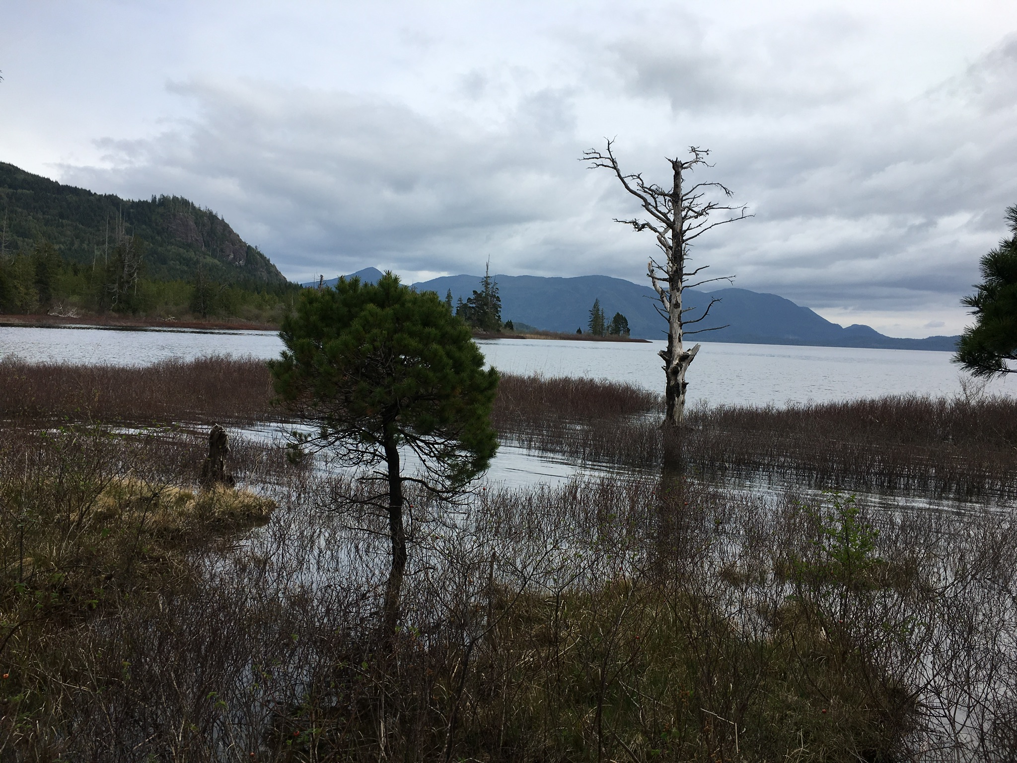 All this is a long winded way of saying I’d left plenty of time to make my meeting, and the traffic gods were beaming down on me as I experienced the briefest of stoppages. This left me time to make a stop before Alberni at Sproat Lake, take a short wander under the trees and along the shore, sip my travel coffee (prepared in anticipation of a long flag stop!) and gather my thoughts, such as they were.