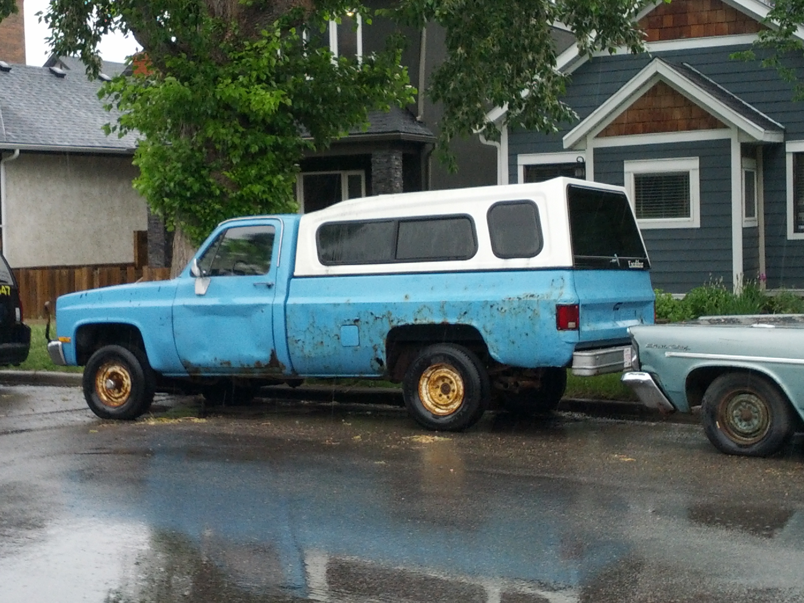 Splash! Thursday, the day I wrote this, was a day where light rain became heavy rain, with pulses and cloudbursts blowing through on strong gusts. Then the skies almost cleared, and the wind almost dropped. Almost.
