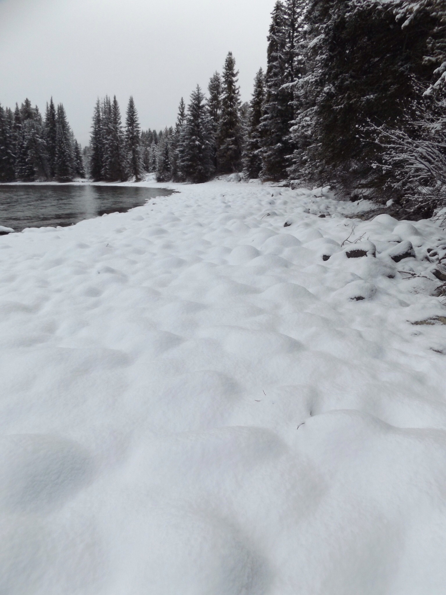 We opted to take a hike, taking delight in leaving fresh tracks across the first snow, all along Baker Creek and down to the Bow River. The snow wasn’t deep, but it was enough to change the landscape and create something new. What a relief to be out in the snow, tramping back and forth along the river bank, and recharging instead of feeling snowed under. Snowed under? No, no, we were under the snow! Winter is almost upon us, a season to embrace, and it’s almost always a perfect time to take a hike. Feels good.