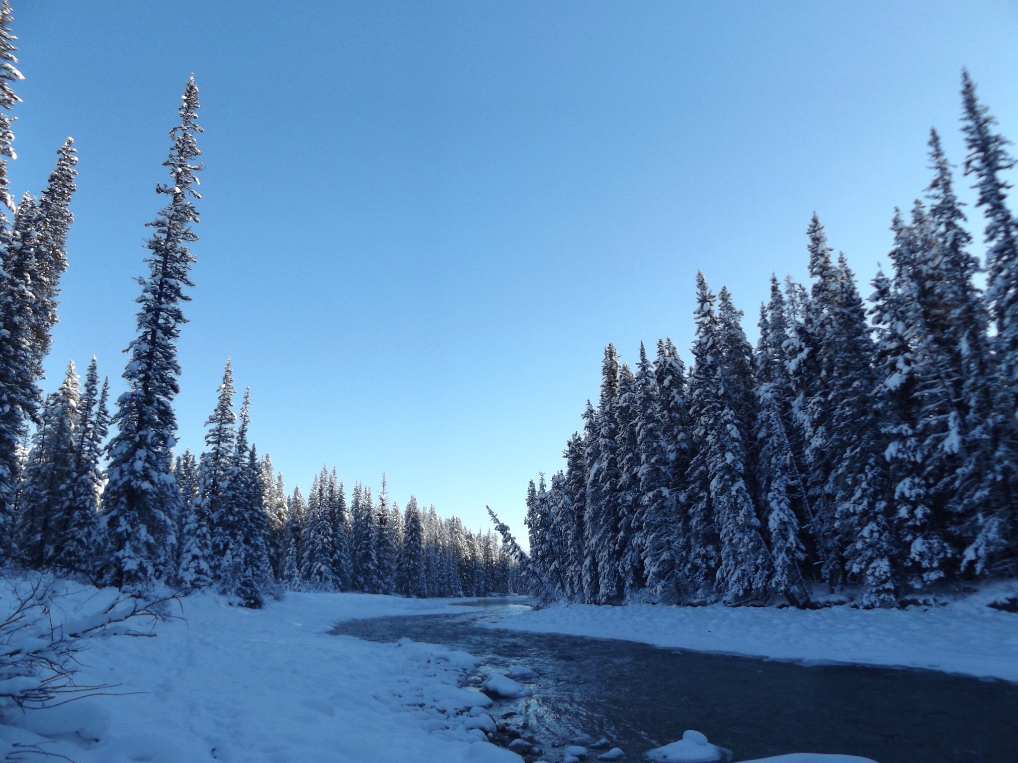 We were on snowshoes down by the Bow and Baker Creek a short while ago. Snow was falling, and the trees had a good coating. The wind had less teeth in the trees, and although temperatures were low, conditions were just right for tramping. And there were bare bones everywhere…