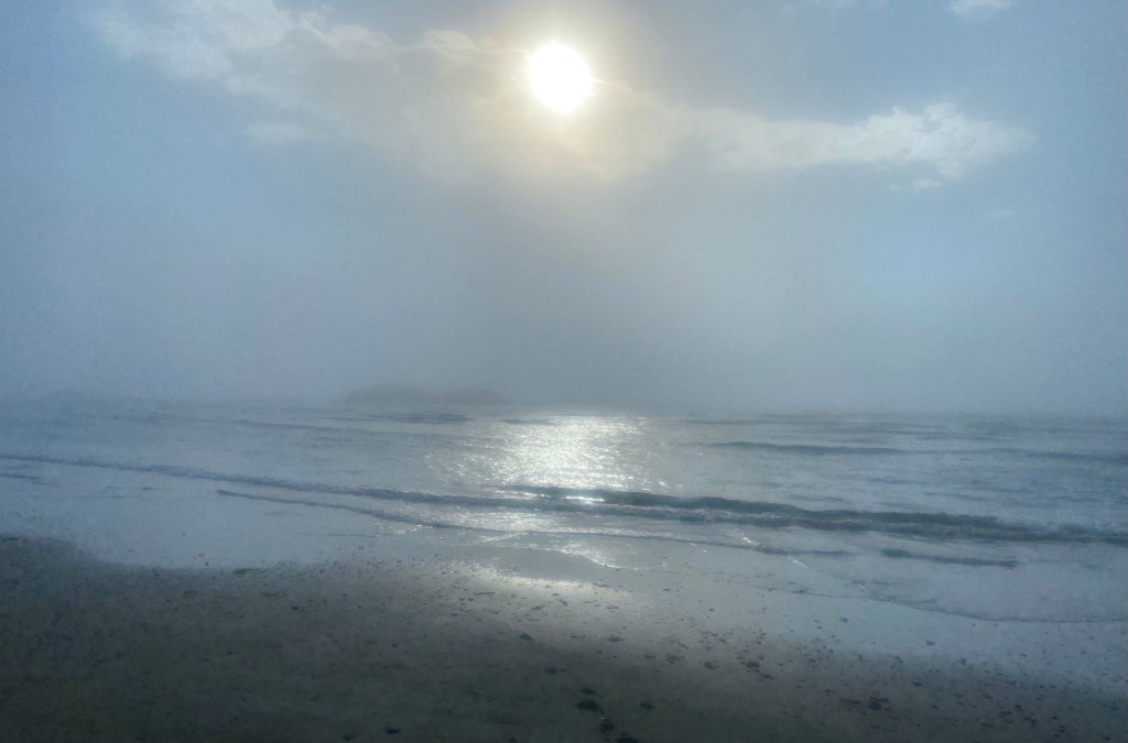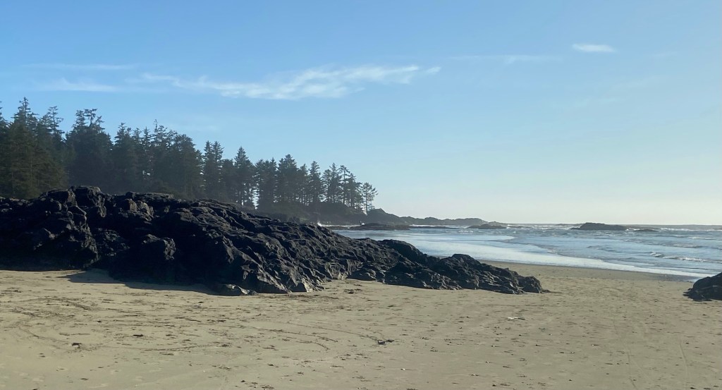 The other day Scout and I hit the nearby beach at low tide and we enjoyed the greenery revealed, some welcome brightness on a generally overcast/rainy morning. The chill seemed to have deterred other walkers and we had the place to ourselves, aside from the crows and eagles. And everything else I didn’t spot.