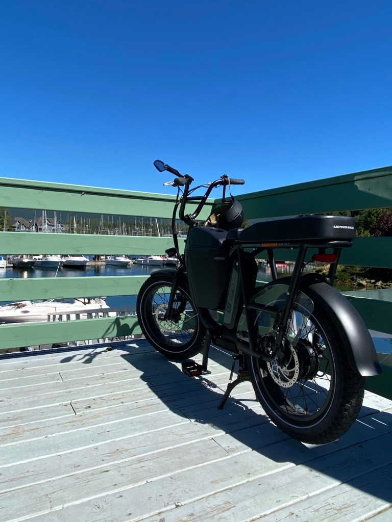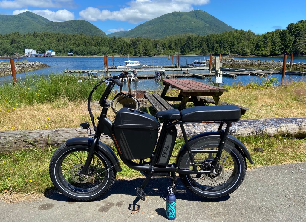 Present day, I like to pedal (assist) my way slowly and carefully around town – when the sun is shining. My small combined mission to not fall off and do all errands in Ucluelet by bicycle or on foot has proved successful so far. A friend has an e-motorcycle and likes to tell me how fast it “could” go, but we’ve resisted the need for speed, and I’m not going to push my no broken bones from a bike record for a midlife crisis and curiosity about could an e-bike make that jump? (I think it could, but I’m not succumbing to peer pressure or forgetting to act my actual on the outside age…)