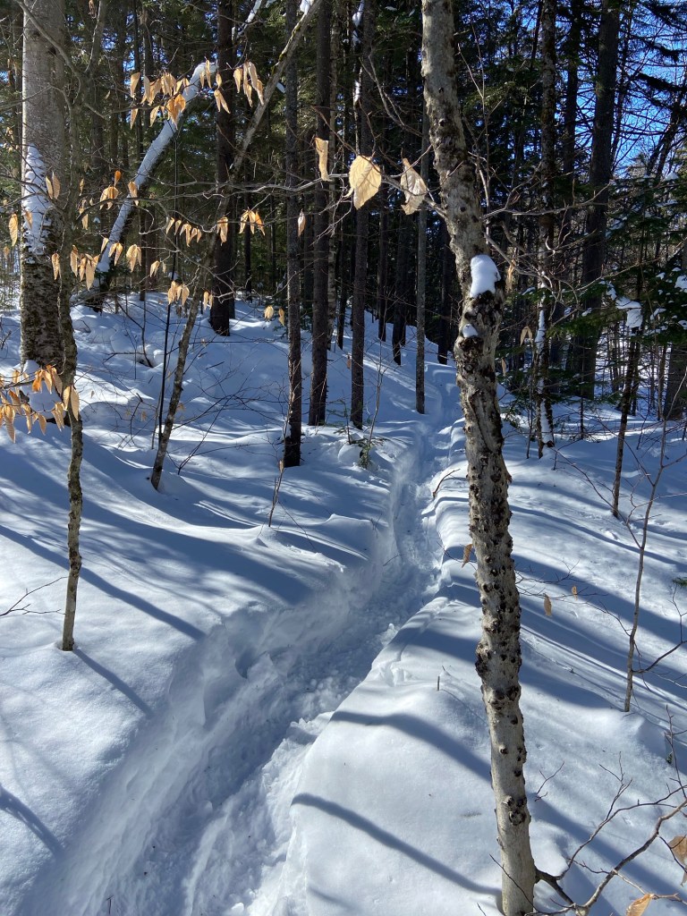 With daylight hours lengthening, and occasional almost warmth when the sun reveals itself, we’re seeing some of the small changes that add up to the approaching new season. Realistically, it is distant yet, but we sort of fooled ourselves that spring is (almost) in the air! Yes, the snow was deep, and yes, we were on snowshoes, but we could see change coming in the hints of new buds, birdsong above, and in the slight thaw after a period of deep freeze.