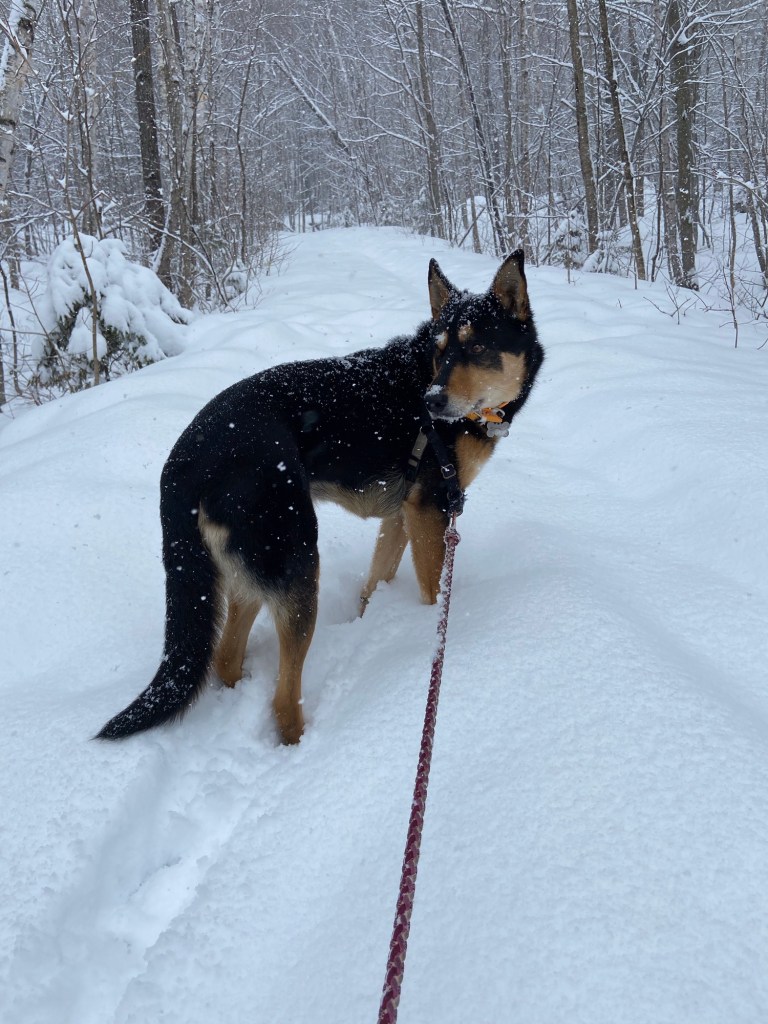 So no spring break style weather for us, but at least the last round of snow fell through a colder patch. It stuck around on top of ground that was more frozen, making travel into the woods much easier. Hard to say who was happiest, me or Scout? Probably Scout by a nose!