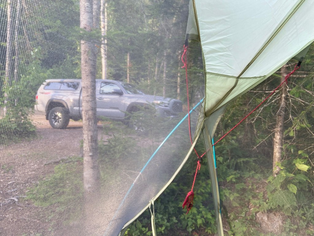 The black fly count was far lower than our previous outing, and we’d have probably been ok without the screen, but it was pleasant to be able to rustle up and eat meals without any bugstractions.