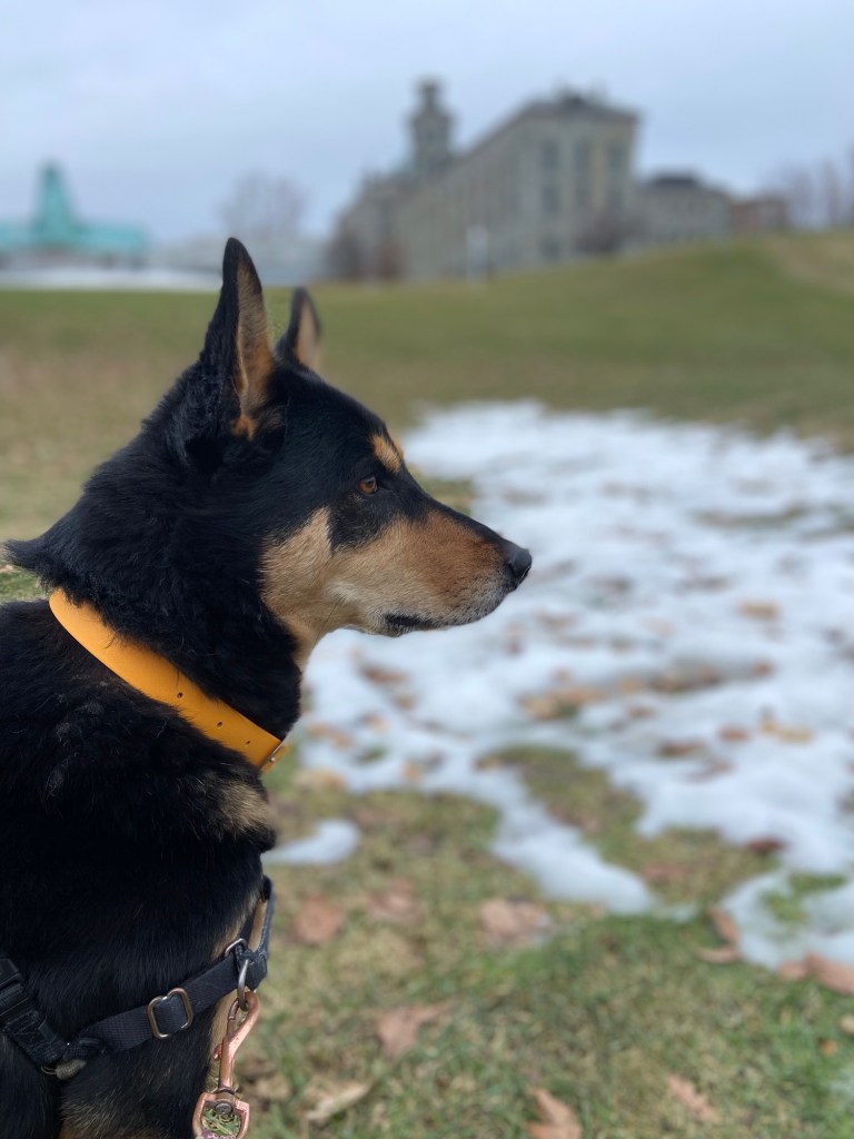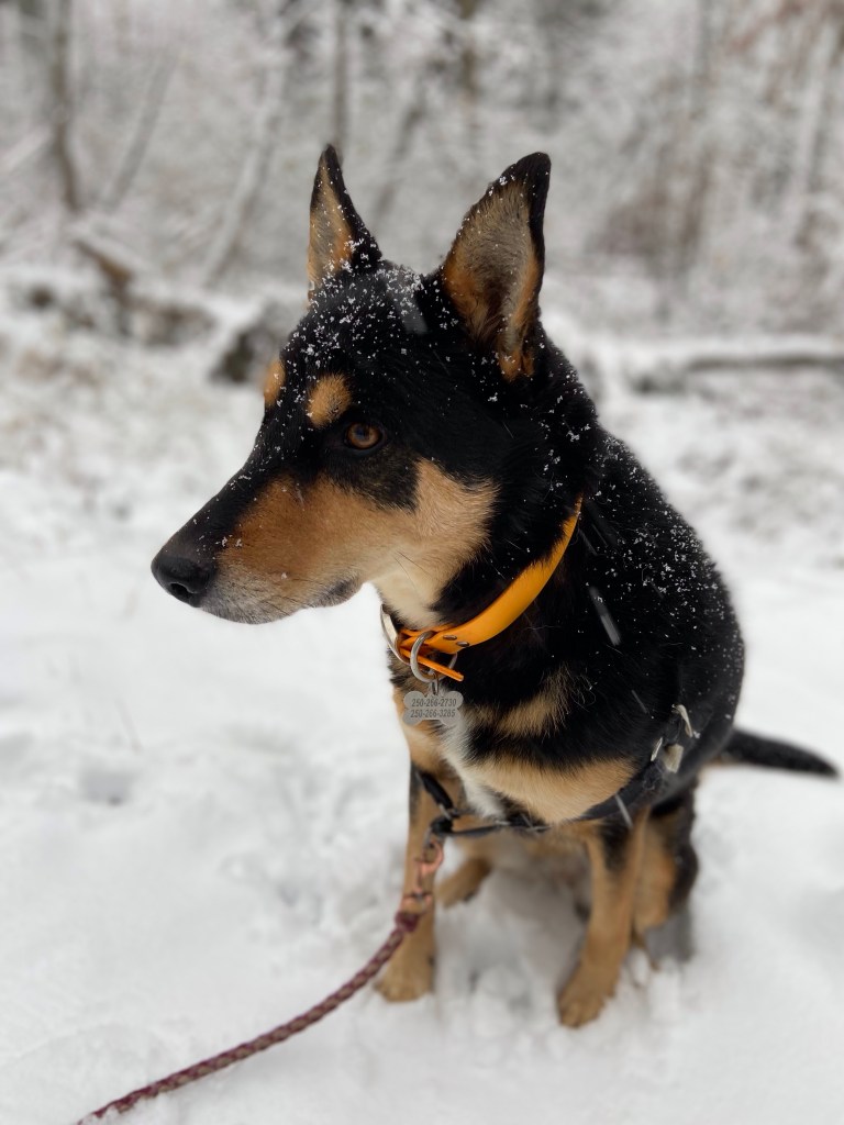 Scout earlier this week, enjoying the thrills of a Quebec winter. Look at that snow!