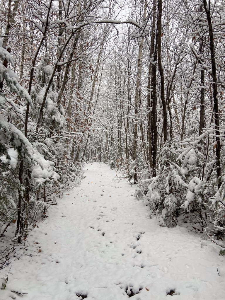 What’s left of the last of the leaves will be buried under deep snow, and any crunching will be of an icy nature. What a wonderful fall it has been, and what a wonderful winter we’re looking forward to! Our woodsy wanderings will continue, slower paced by being on snowshoes or in winter boots through deeper snow. Maybe we’ll speed things up from time to time on xc skis – if we have enough muscle memory to remain balanced enough to get away with it. A winter on skis? It’s been a while…