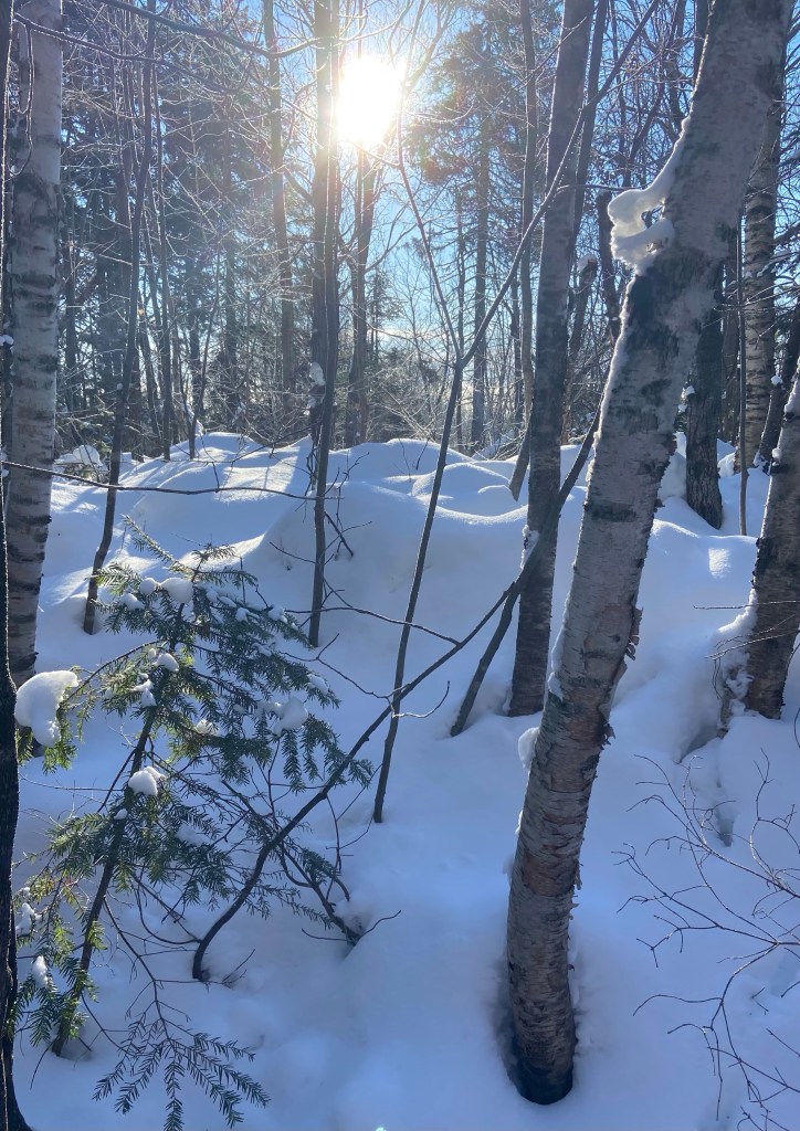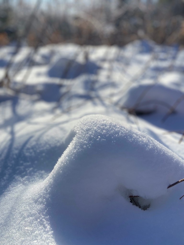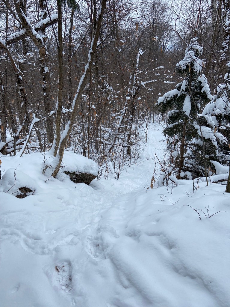 No amazing glass trees, and no graceful gliding, but the silvers and greens and our steady snowshoe plodding after a fresh fall worked a different sort of wonder for us! The latest thaw is behind us, and I believe both more snow and appropriately steady seasonal temperatures are in the forecast…