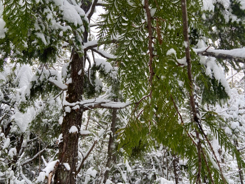 It didn’t take too long for the quite mild temperatures to cause the snow to drop off tree limbs in great sliding thumps of snow. It was fun to walk down Rainforest Drive and dodge the wet snow bomb clumps. This wasn’t champagne powder snow, it was more like porridge.