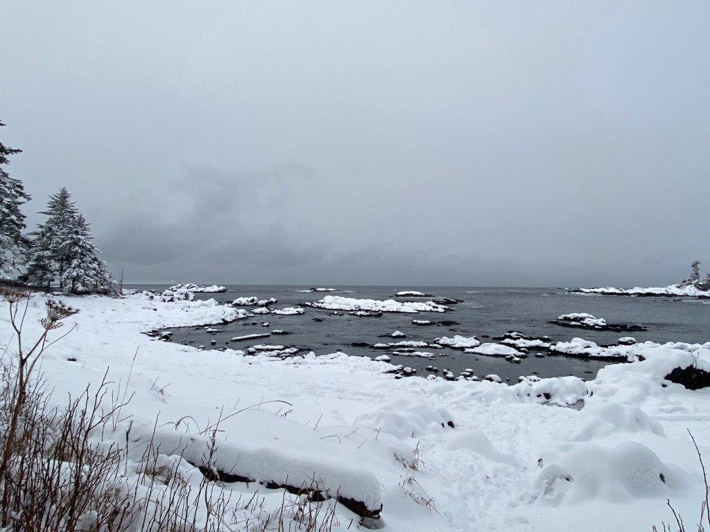 The beach was interestingly different, but actually quite difficult to navigate, with all the rocks and large pebbles hidden under the snow. Next time (next year?!) I’ll come down to the beach when it is snowing, see the flakes driving in off the water.