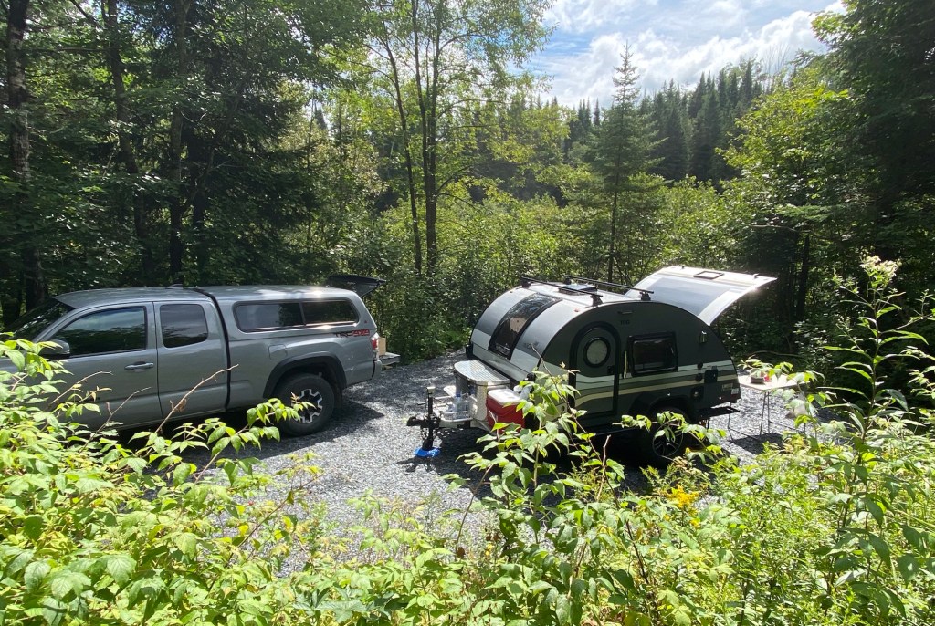 Yes, we now have a tiny teardrop trailer. A bed on wheels with a small kitchen tucked in the back. The trailer body footprint is smaller than our last tent, yet it sleeps two adults and one medium dog in great comfort. Oh, the comfort. I like tenting, but I love waking up without the cold hard ground seeping into a sleeping bag even more. Turns out we quite like a little extra padding in our early middle age. That’s the mattress, not us. Well, mostly the mattress.