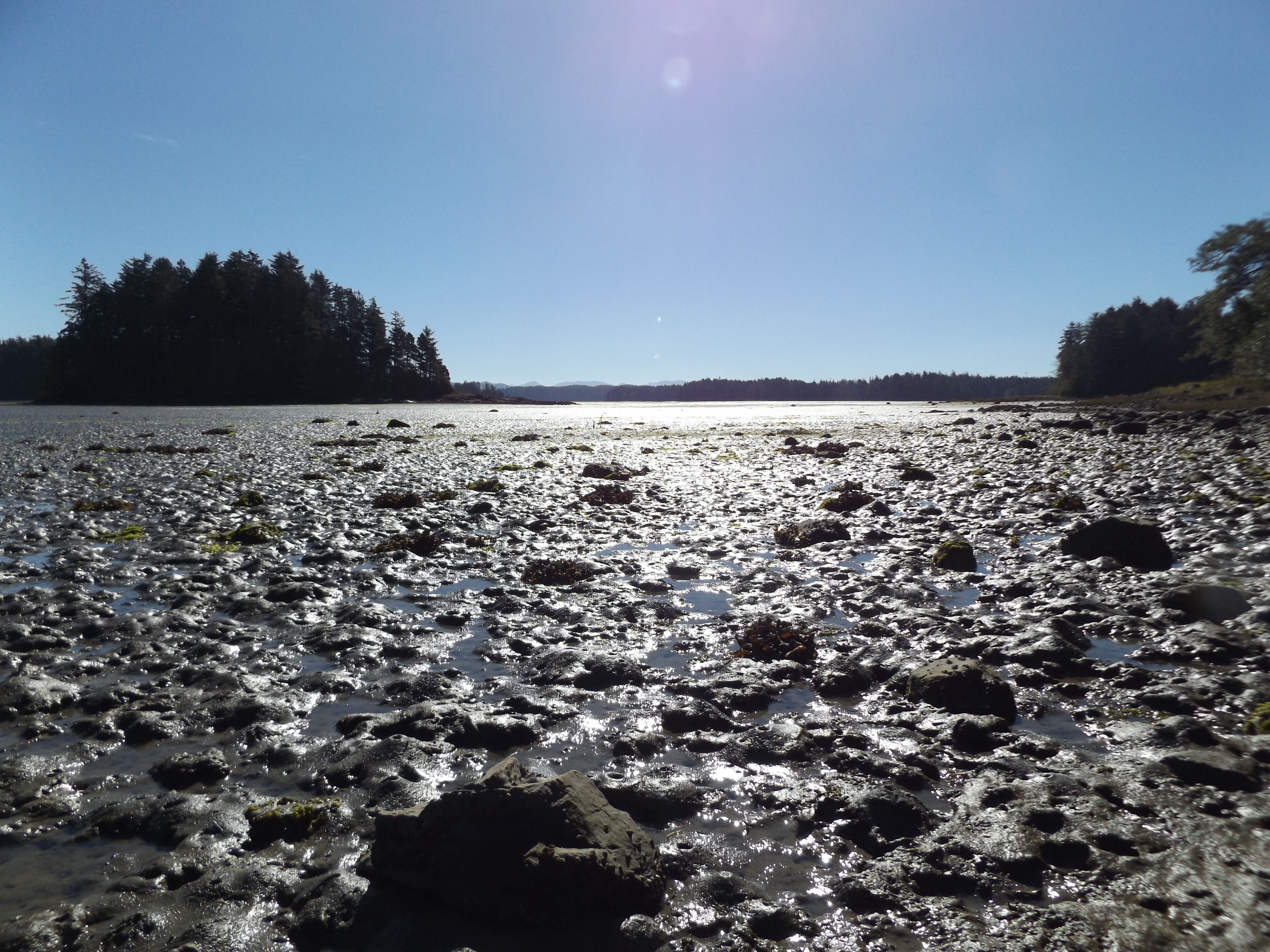 Our first afternoon in the woods was hot and humid, but under the canopy oh so green and lush. The trail was simple enough to pick out, sometimes rocky underfoot, sometimes grassy, and sometimes earthy, with changes in the terrain every few metres. Exposed slopes and clearings were bug free with a slight sea breeze. In these open areas, golden grass was almost like straw in the strong sun.